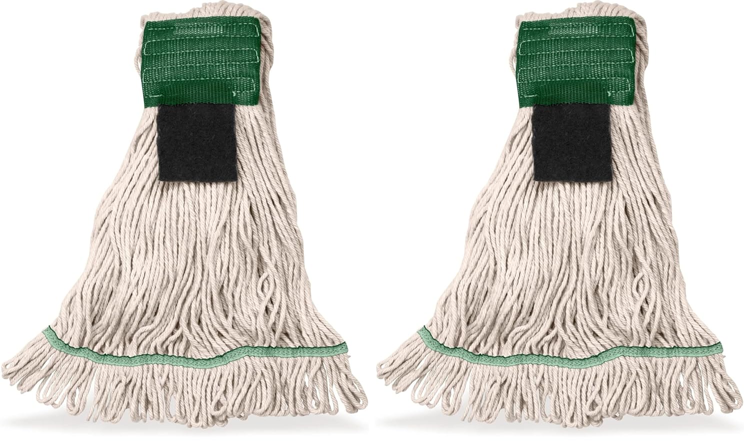Introducing the Flo-Pac Medium Green Band Looped End Mop - the perfect cleaning tool for commercial and industrial settings. This mop features a 5" wide color coded headband, making it easy to organize and identify among your cleaning supplies. The looped end design provides larger floor coverage, allowing you to clean more effectively and efficiently. Made from a highly absorbent 4-ply cotton blend, this mop is perfect for tackling spills and messes of all sizes. It is also durable and heavy duty, designed to withstand frequent use in high traffic areas. This mop is available in two colors, allowing you to choose the one that best suits your needs. The Flo-Pac Medium Green Band Looped End Mop is a reliable and effective cleaning solution for any commercial or industrial space. Model number: 369418S14.